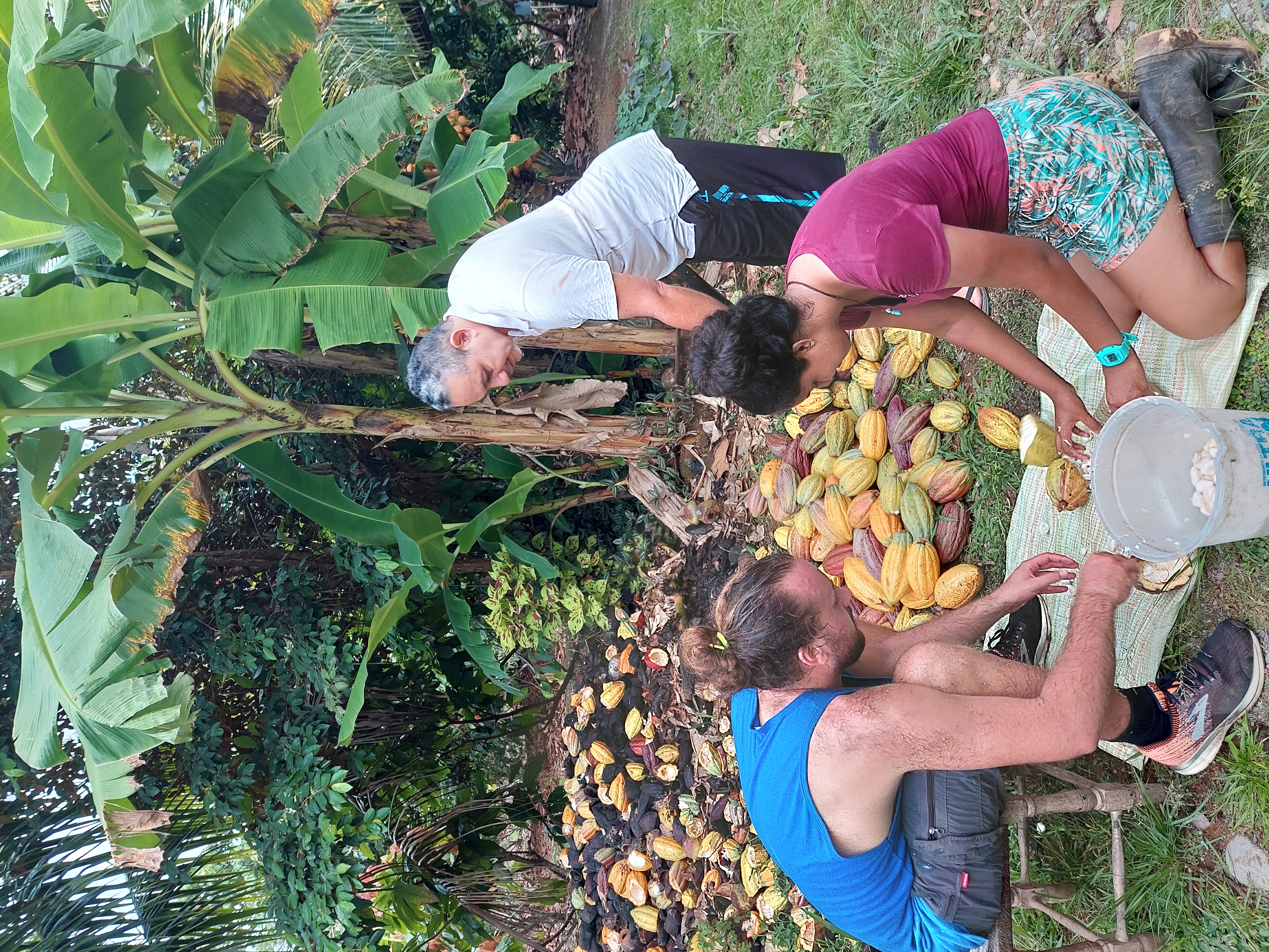 Ich habe teilweise eine Woche auf einer Kakaofarm mitgearbeitet, und da merkt man erstmal, was für ein scheiß harter Knochenjob das ist. Von hier aus, vom Schreibtisch in Deutschland, sagt man schnell: „Ach, die machen es sich leicht mit den Chemikalien – die könnten ja auch einfach mehr Unkraut jäten.“ Aber wenn man selbst mal einen ganzen Tag lang bei 40 Grad Unkraut gejätet hat, überlegt man sich beim nächsten Mal, ob man nicht doch lieber auf Chemikalien zurückgreift, statt sich den Rücken kaputt zu machen. Vor Ort hat sich meine Meinung da ganz klar verändert – einfach zu verstehen, was die Menschen dort eigentlich leisten.